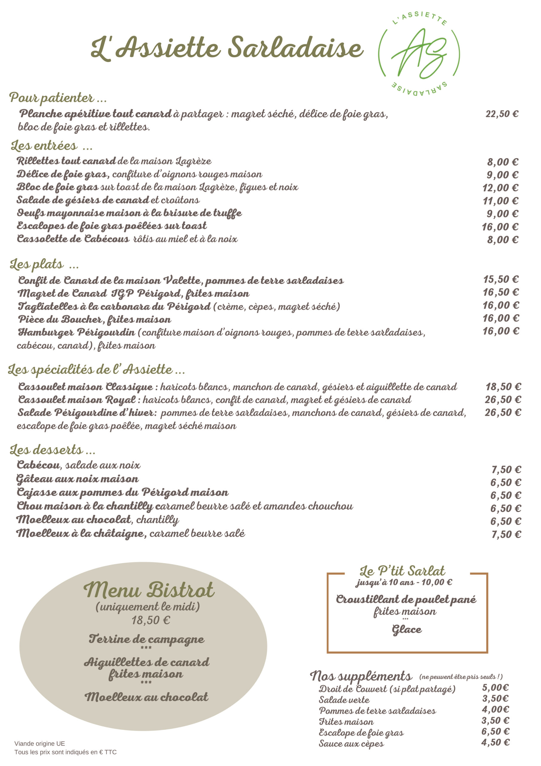 Venez découvrir nos cassoulets Classique ou Royal ou encore la carbonara du Périgord !