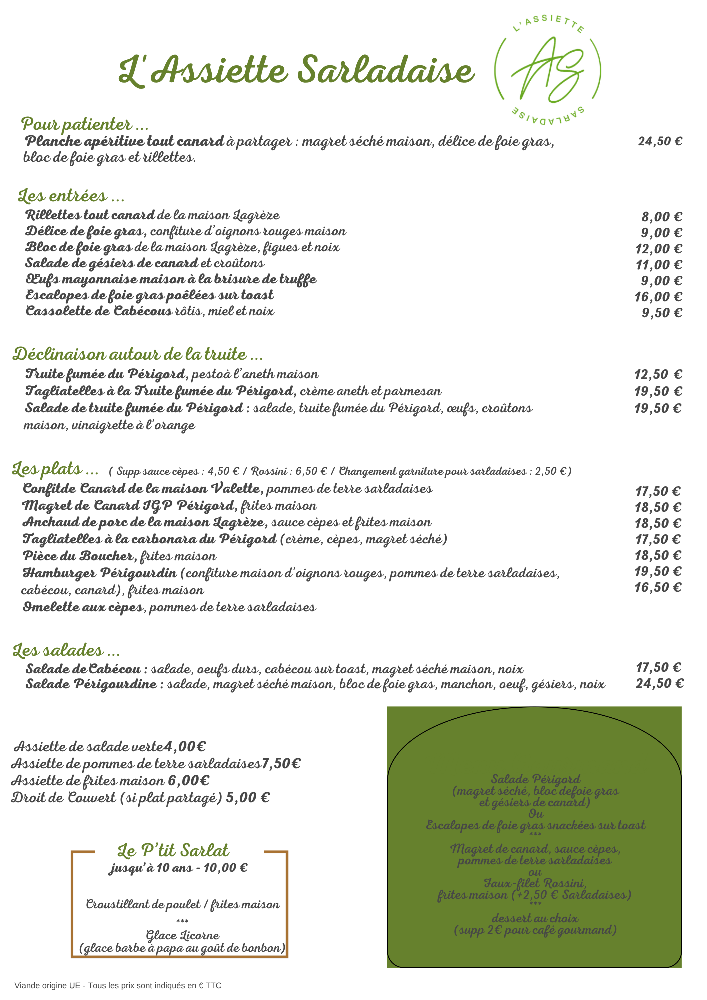 Découvrez nos formules ou nos plats à la carte !